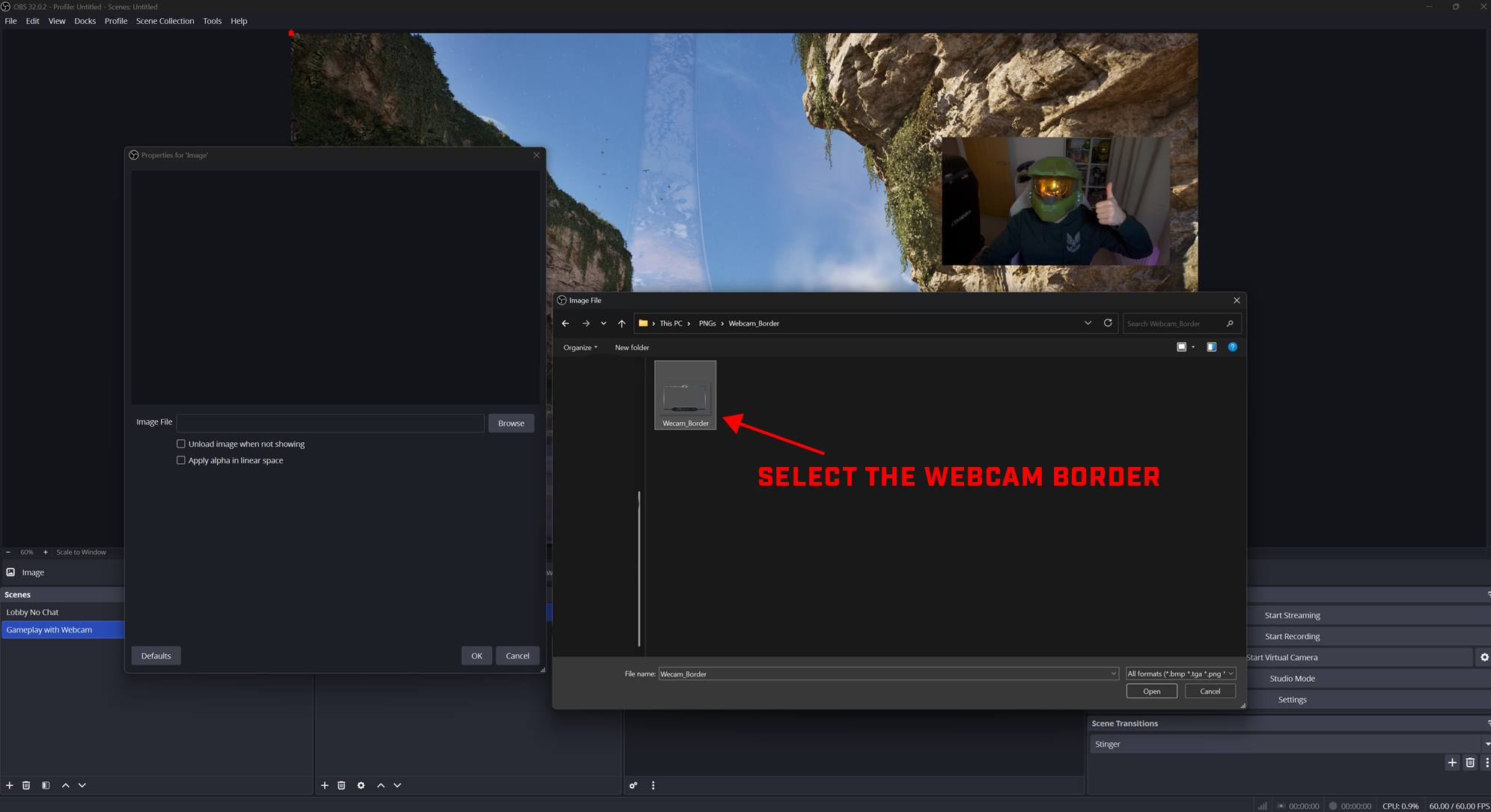 To adjust your camera output exactly how you’d like it, simply click and drag the element to your desired location and scale it using the selectors at the corners. If you’re playing Halo, we recommend placing the webcam output at the upper right of your screen, just above the midline, where it won’t obstruct useful HUD elements.