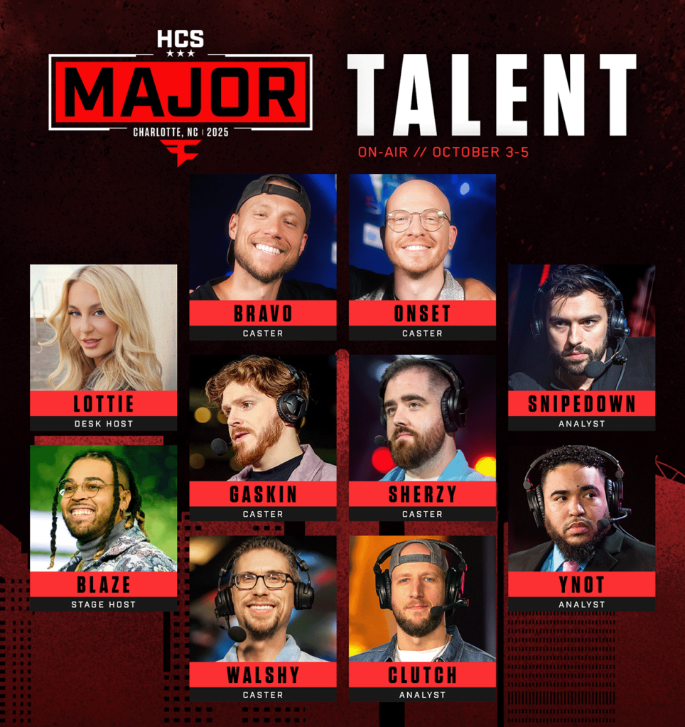 When will the HCS Charlotte Major 2025 take place? | The HCS Charlotte Major 2025 will take place October 3-5, 2025. |