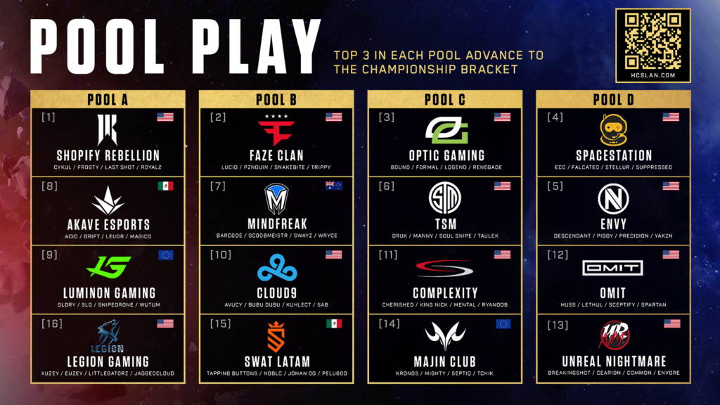For real-time tournament updates, be sure to follow @HCS on socials!