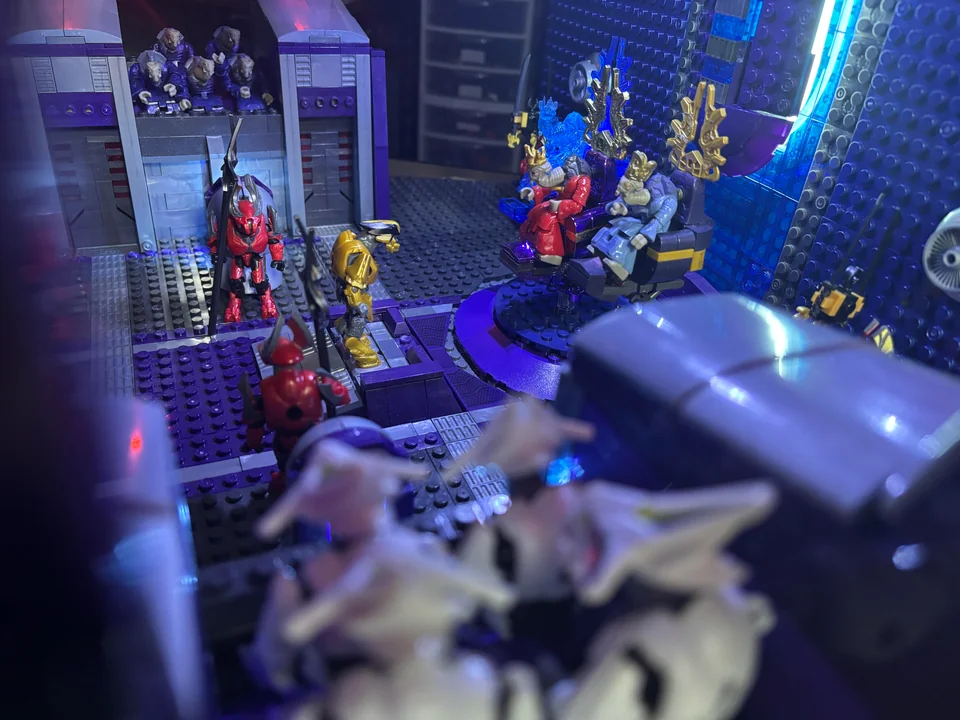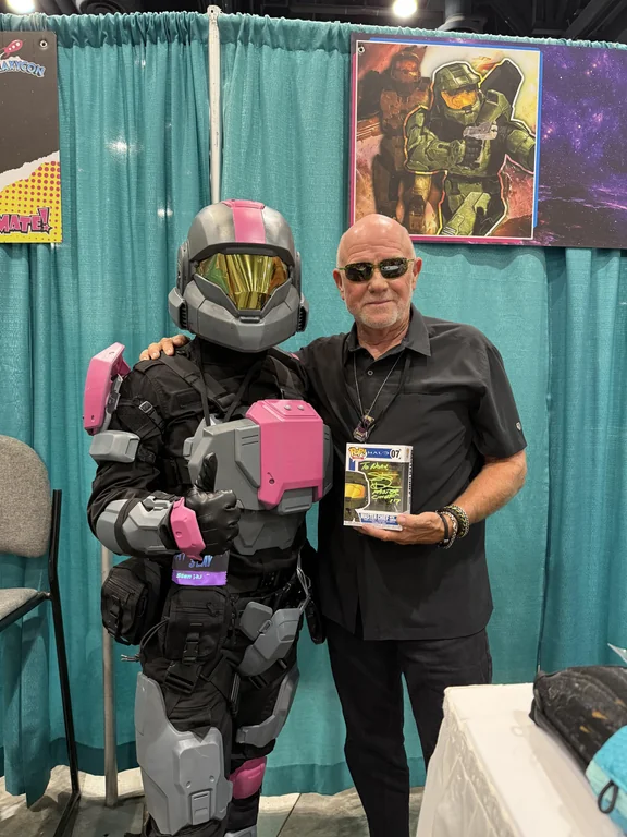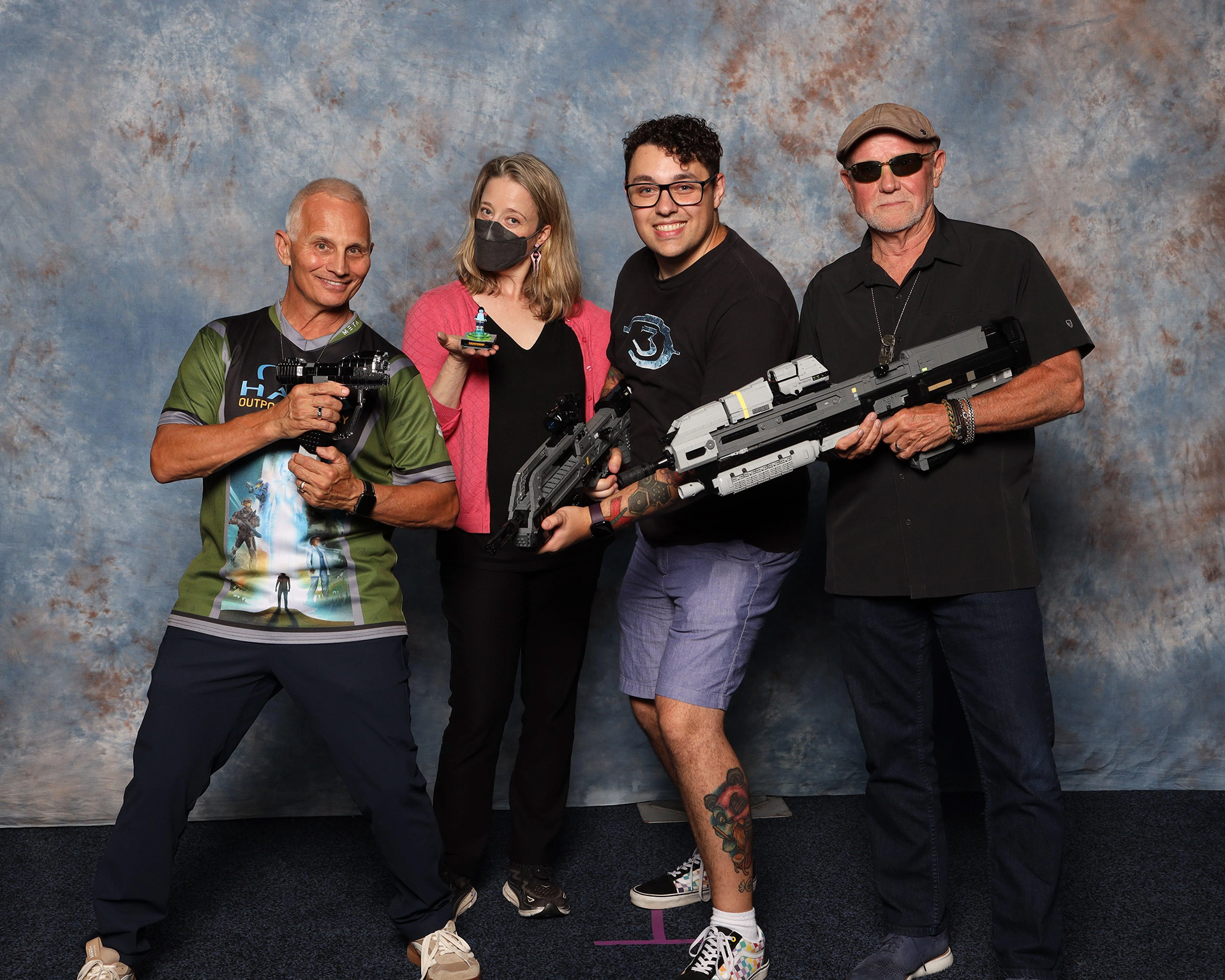 NickBrick shares three—no, four custom builds with Halo voice actors Tim Dadabo, Jen Taylor, and Steve Downes at Fan Expo Chicago.